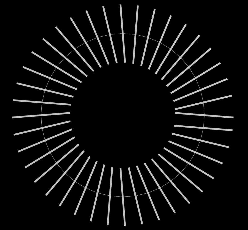 The problem is grounded in the fact that the 3 o’clock position on this particular circle are where the first and last points on the circle primitive meet. Manu’s original implementation of the parallel transport algorithm, based on this paper here, starts on the first point of the curve and computes orientations from first point to last point. Each point is figuring out what its tangent vector is (what direction points to the next location on the curve) based on the position of the next point in line. If there’s no more points in line, though, the algorithm just extrapolates the next tangent based on what the previous one looked like. It wasn’t really meant for this edge case where the start and end points are linked!